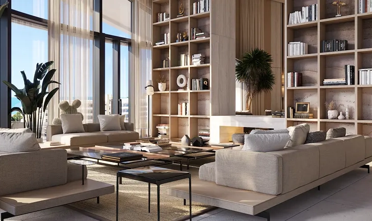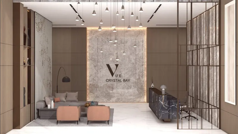 Vue by Crystal Bay redefines urban living at Jumeirah Village Circle (JVC), Dubai with its blend of sophisticated design and modern luxury studio to 3 bedroom apartments. The premium grade architectural marvel characterized by an industrial grid-style exterior, it stands as a beacon of elegance and innovation. The structure, supported by a robust steel framework, exudes a tactile smoothness enhanced by the pool element, creating an inviting atmosphere.Step inside, and you'll be greeted by interiors that epitomize minimalistic contemporary style. Natural light floods through expansive windows, illuminating spaces adorned with clean lines and a warm, natural colour palette of beige, grey, brown, and tan. The use of beige travertine and walnut elements throughout the interiors ensures a cohesive and refined aesthetic, making each room a sanctuary of tranquility and comfort.The arrival experience is nothing short of serene. A spacious reception lobby welcomes residents with a tranquil ambiance, blending the formalities of a reception area with the inviting aesthetics of a lounge. Here, you'll find top-notch amenities, including yoga and gym facilities, and an extensive swimming pool area, ensuring every need is met.Residents are treated to a VIP reception experience with central security teams providing convenient access and visitor management. A premium concierge service caters to the residents' exclusive lifestyle needs, ensuring every aspect of their living experience is attended to with utmost care. It also features state-of-the-art elevators designed for both functionality and aesthetic appeal. Advanced circulation technology ensures smooth and seamless transitions between floors, enhancing the overall living experience.The extensive list of amenities Bay includes an outdoor cinema, tranquility pool, techno gym, mini golf, zen garden, splash pool for kids, plunge pool, single basketball court, kids play zone, retail spaces, meditation lounge, outdoor BBQ station, EV charging station, smart waste system, sustainable water conservation system, and smart home features.